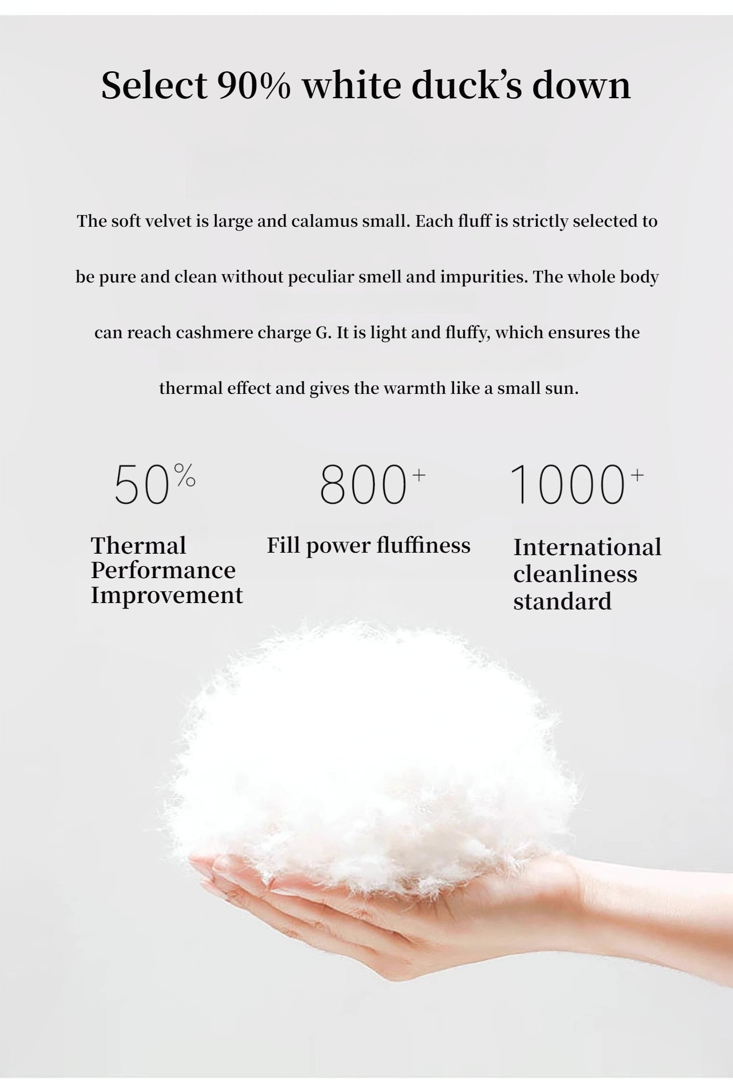 Tailored from a pima cotton and Tencel blend wrapped in high-density woven nylon, its exterior is smooth, resilient, and naturally windproof. Inside, 90% premium white duck down and a cashmere-lined interior envelop you in lasting warmth without bulk.