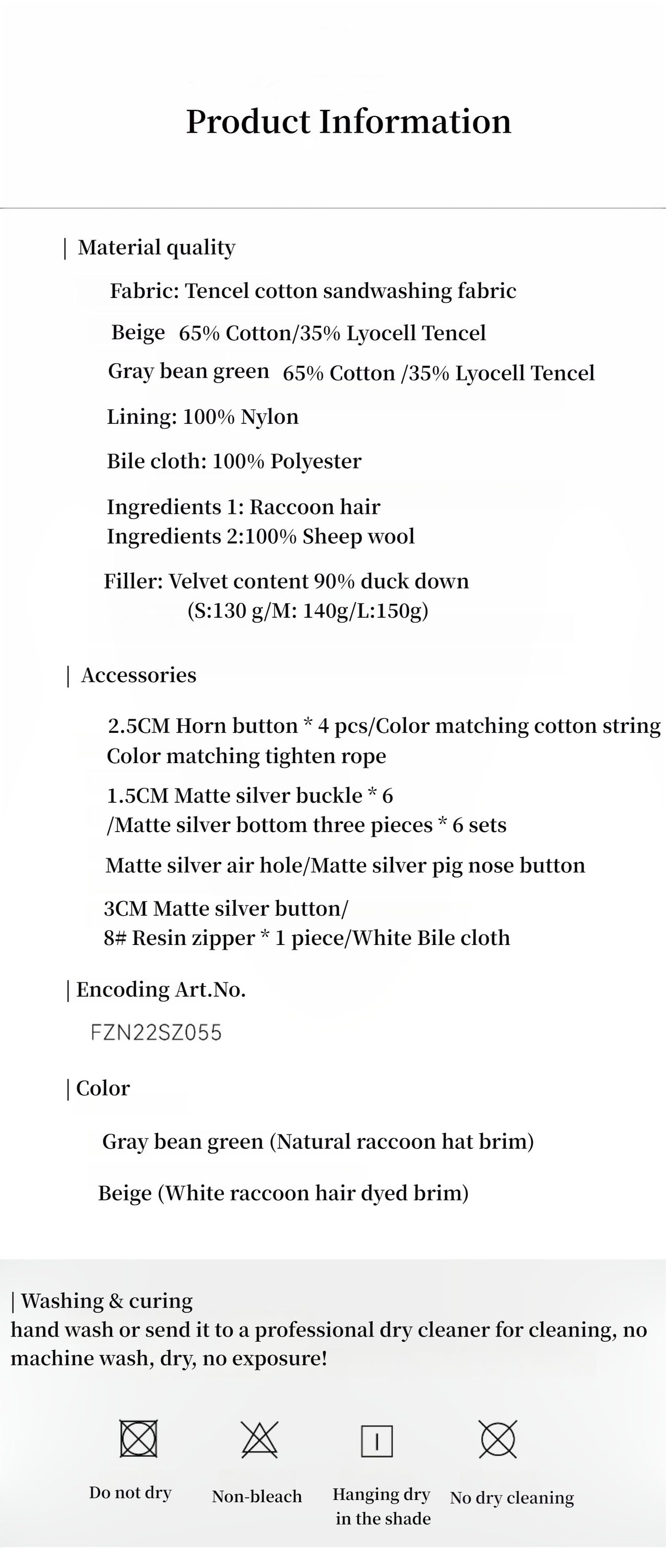 The calf-length silhouette elongates the figure while a concealed drawstring waist adds subtle shape. Finished with a color-tipped raccoon fur hood, natural horn buttons, and sculpted quilting, every detail feels deliberate — refined yet ready for real life.